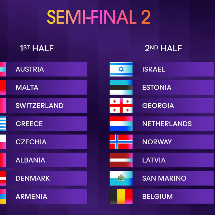 V prvním semifinále Eurovize bude soutěžit 15 zemí. Ve druhém semifinále Eurovision Song Contest bude soutěžit 16 zemí včetně Česka! Pořadí jednotlivých vystoupení bude oznámeno později.